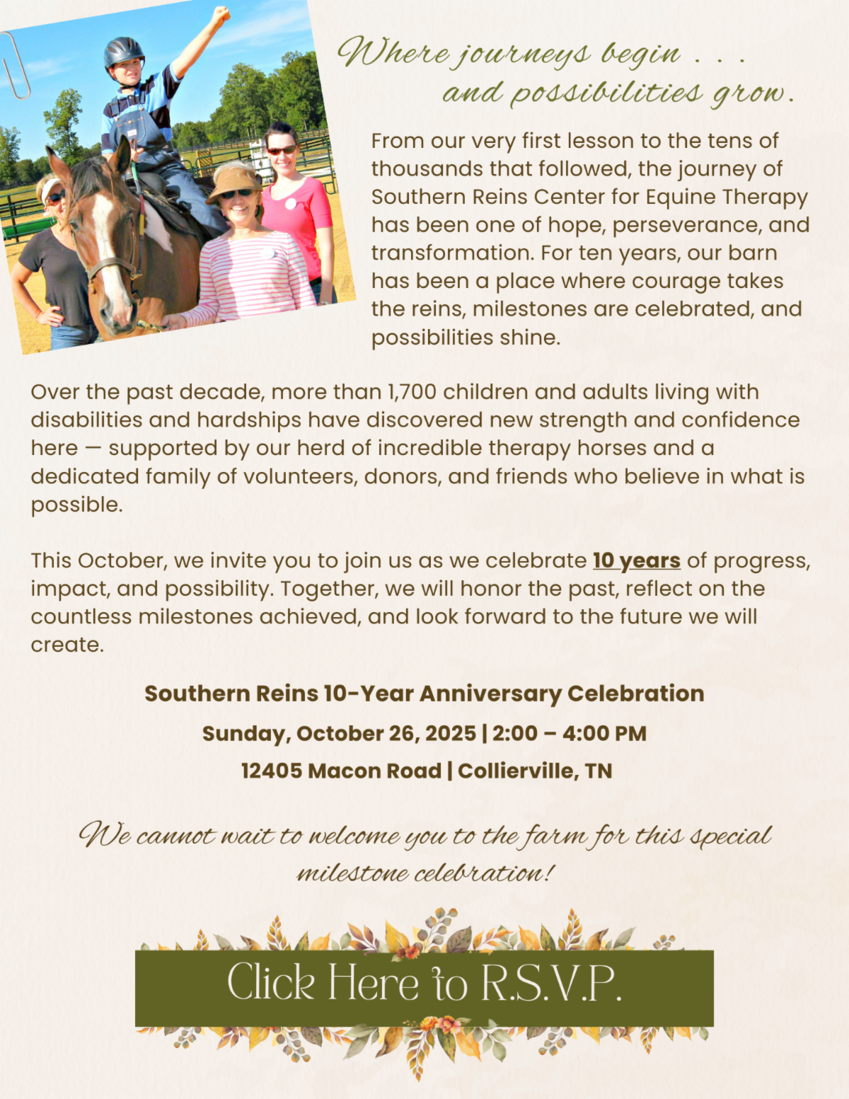 Southern Reins Center for Equine Therapy | 12405 Macon Road | Collierville, TN 38017 US
