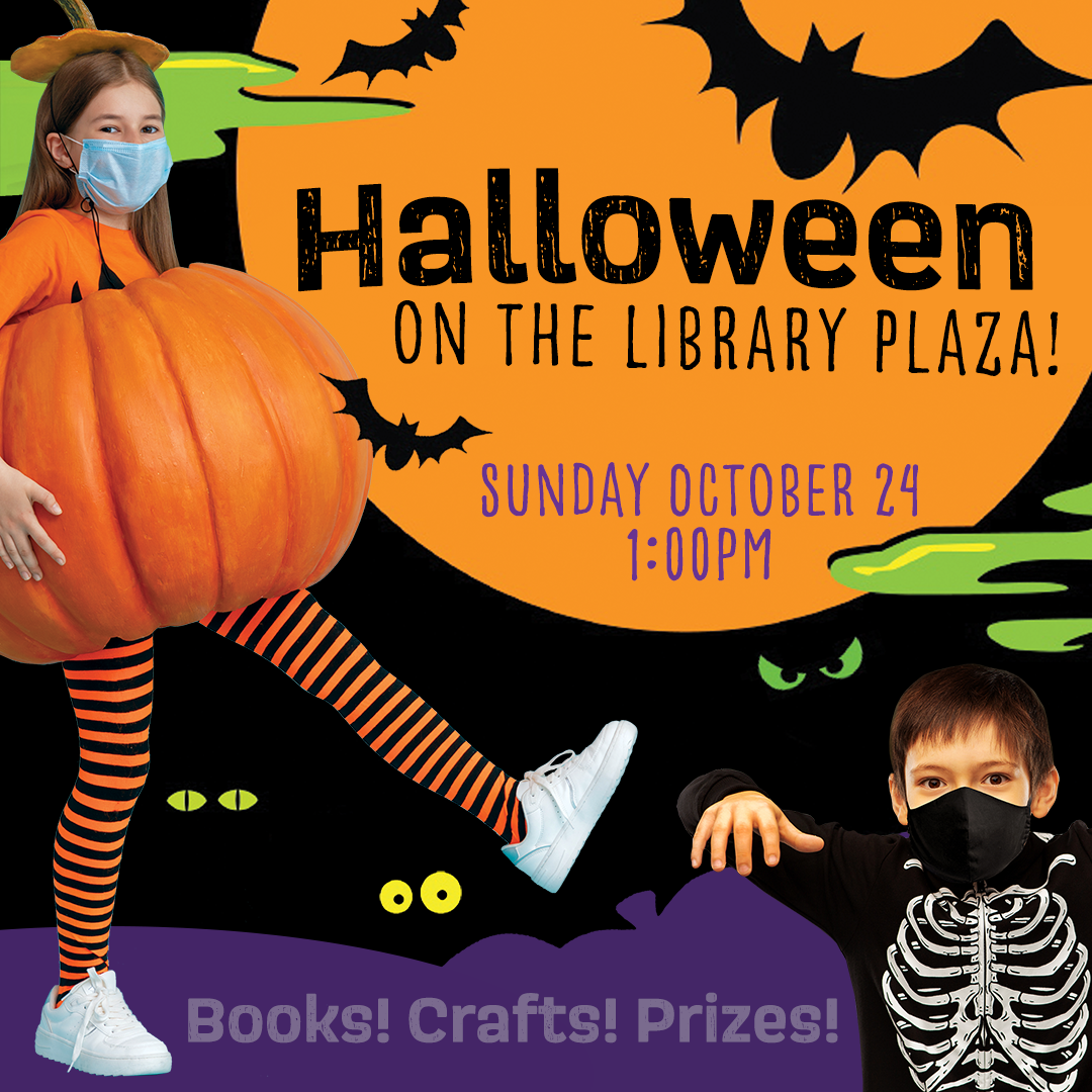 Rain or shine, join us in front of the Downtown Library on Sunday, October 24 for some Halloween fun! Supplies are limited. For grades Pre-K to 3rd.