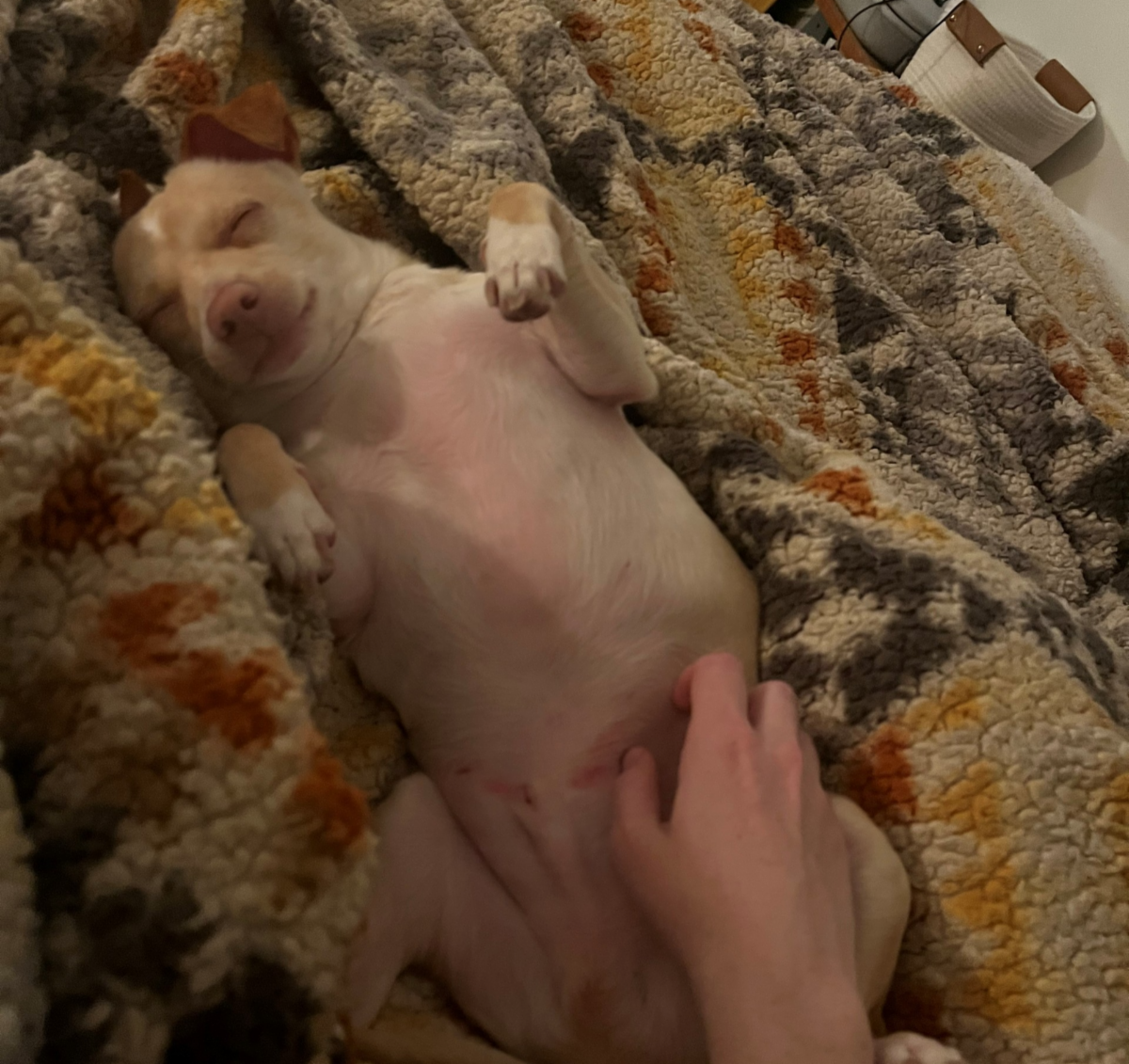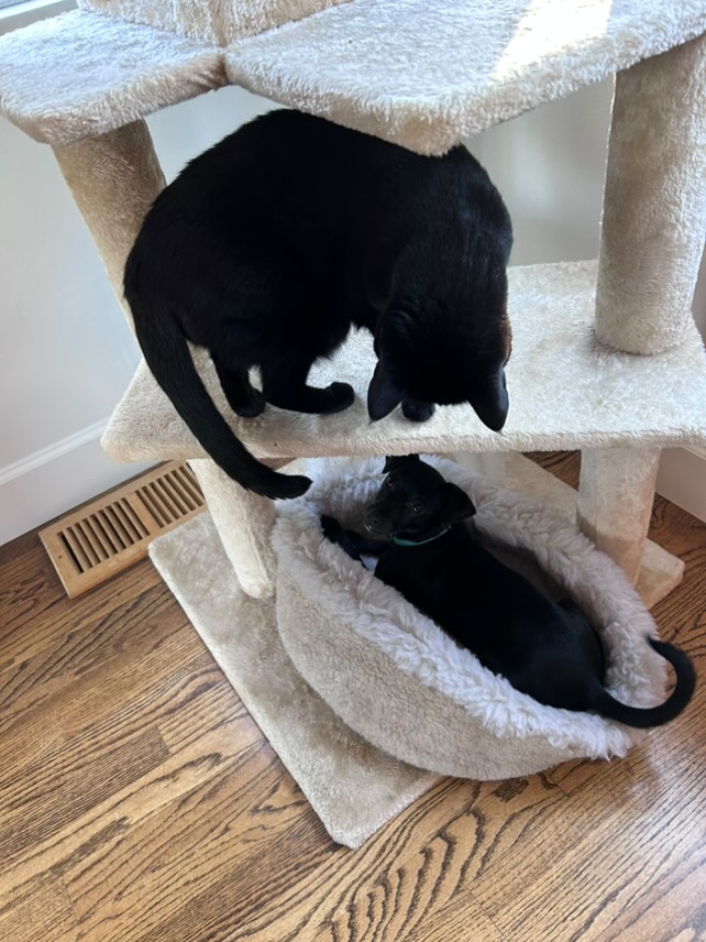 Cutie pie Judith was transferred to us from a crowded rescue partner with her puppy siblings right before the holidays last year. Of course she got scooped up right away! We were thrilled to receive this sweet update from her family recently: “Judith, we renamed her Lilo, is already adjusting to her new home and feline sibling Uma!” | |