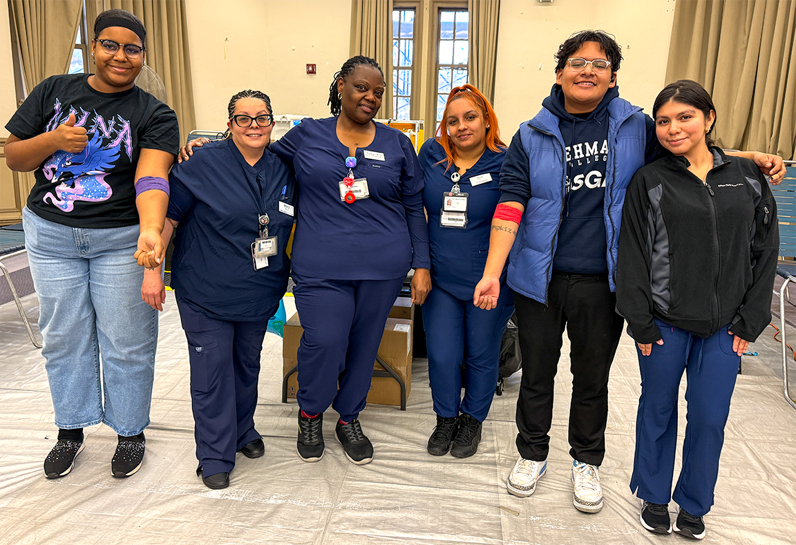 β Lehman Does Good: Top photo: The Student Government Association held a blood drive event to help save lives. Other photos: The Clubs in Action team was photographed at POTS. (Photos by Mildred Perez) | β