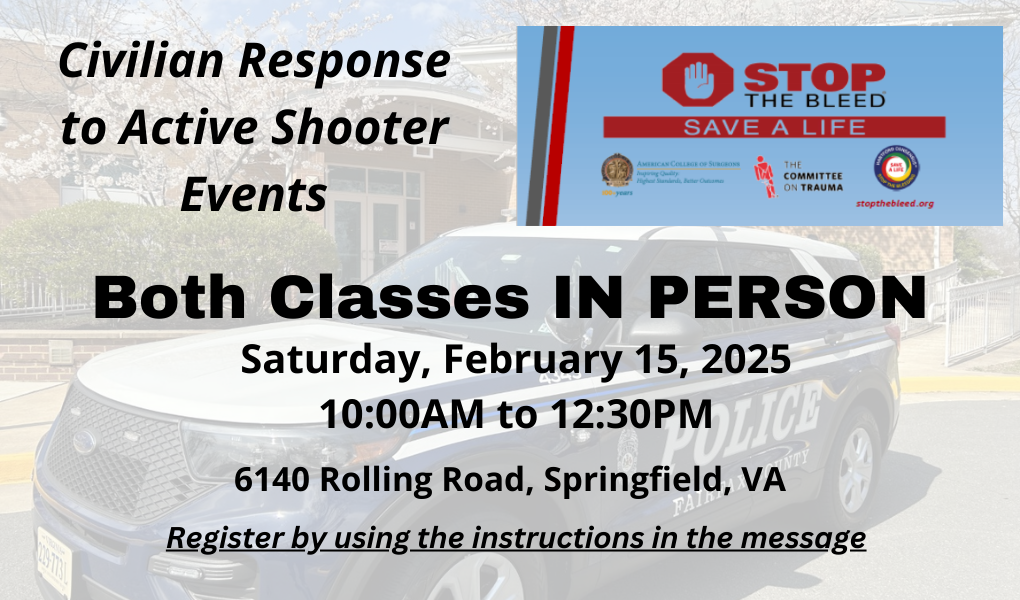 - Location: West Springfield District Station Community Room, 6140 Rolling Road, Springfield, VA