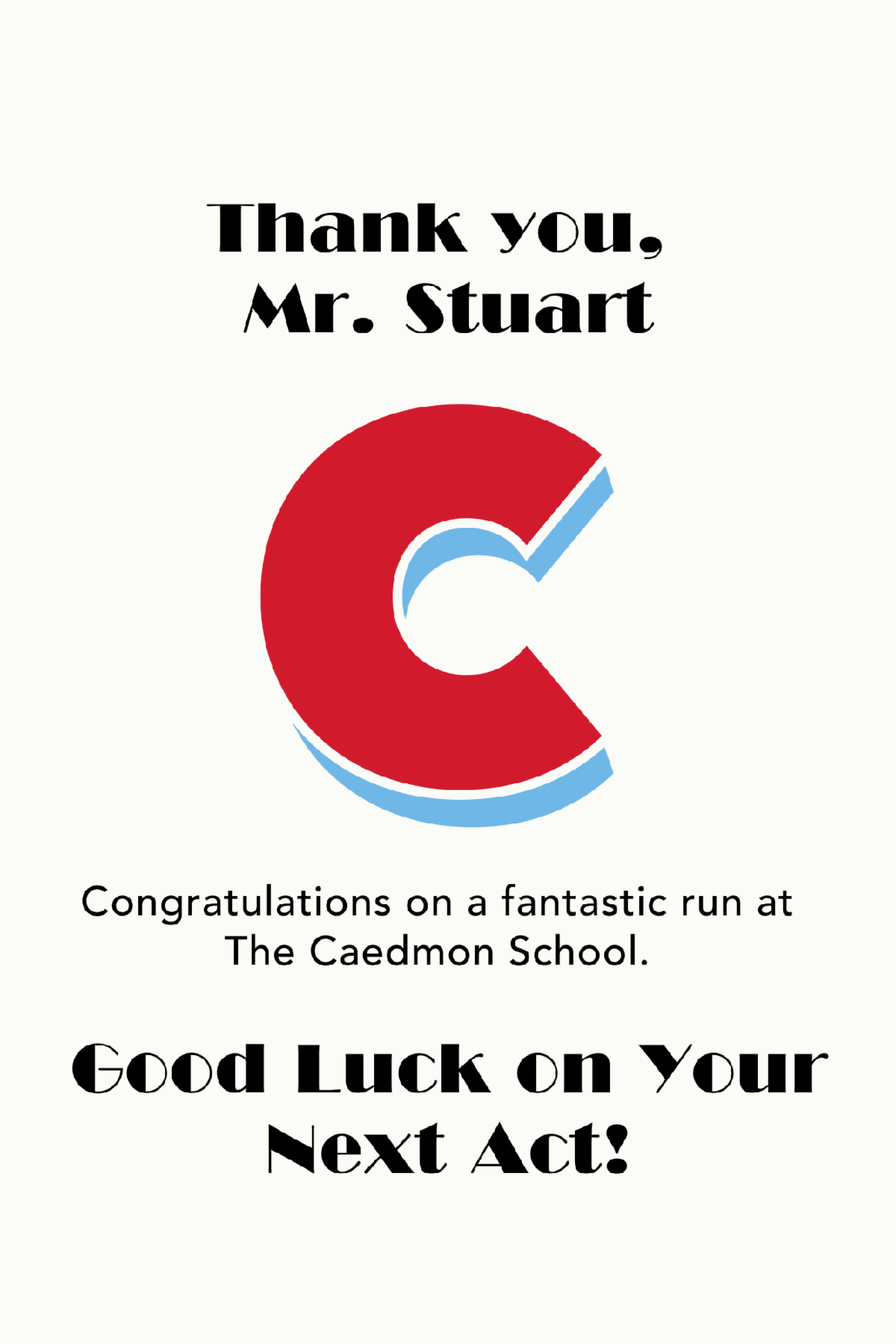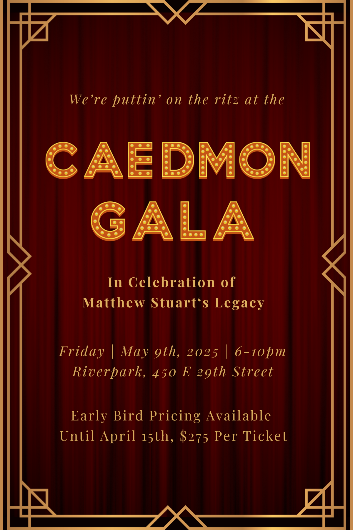 Ads can be purchased on the event website. There are several size and pricing options, and you may choose to create your own design or have our Communications team design one for you. Proceeds from the ad sales will go to the Matthew Stuart Education Fund, which was established as a testament to his enduring legacy and supports a broad range of teaching and learning initiatives at Caedmon. Please submit your ad orders by Monday, April 21.