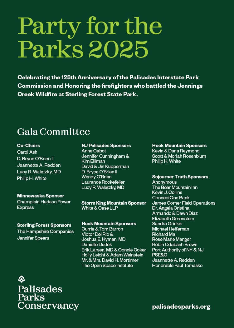 The Conservancy extends heartfelt thanks to all attendees and sponsors whose support ensures the continued preservation and enjoyment of all 29 Palisades Parks and Historic Sites for generations to come.