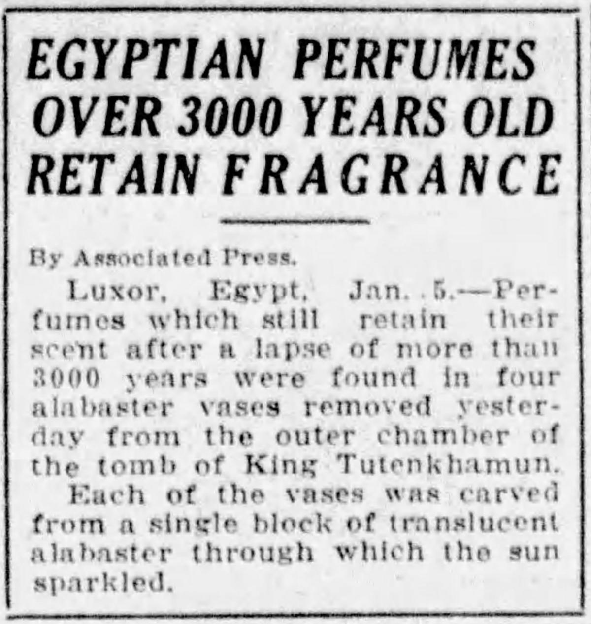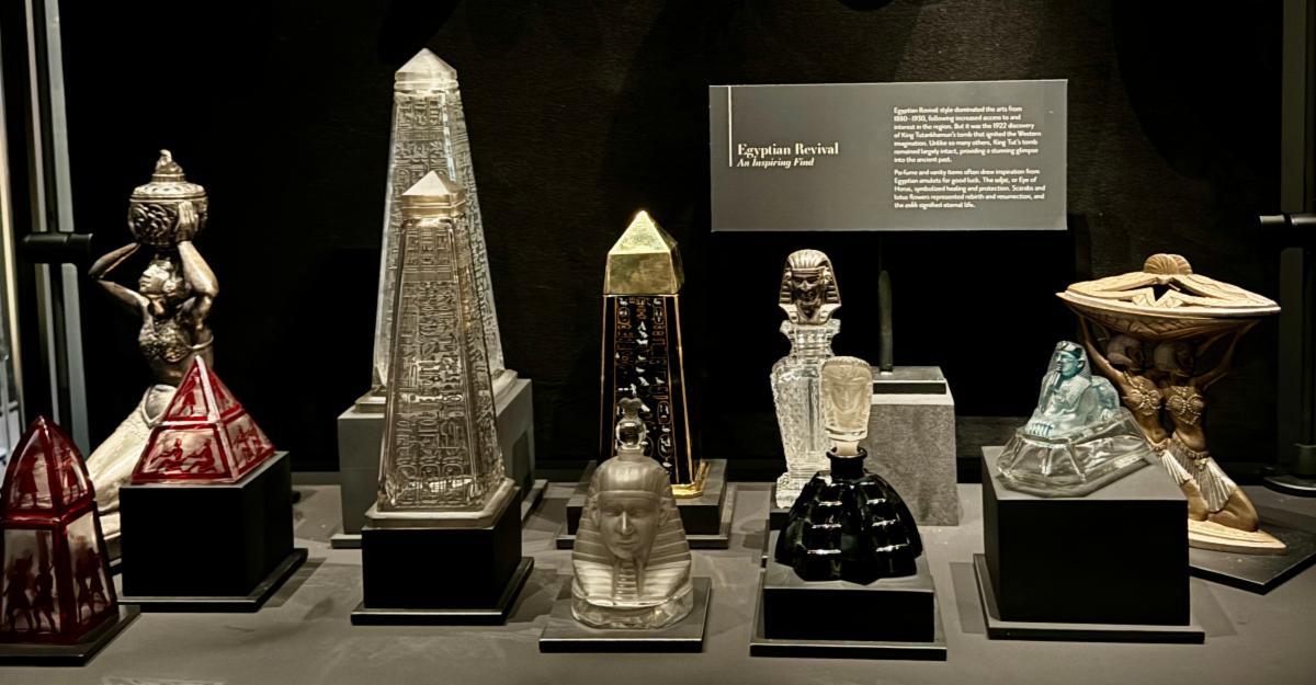 And the excitement that surrounded the discovery of King Tut's tomb in November 1922 ignited a fascination with Egyptian-themed perfume bottles and vanity items, making them popular collectibles today.