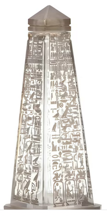 Bichara commissioned the Compagnie de Cristalleries de Saint Louis, a well-known French glass manufacturer to produce the obelisk-shaped bottle for their Ramses II perfume that debuted in 1928.