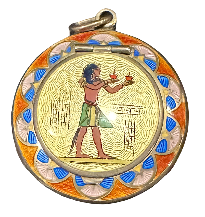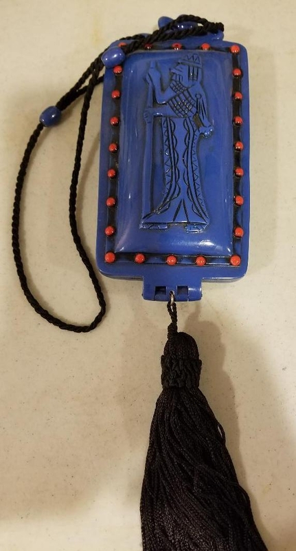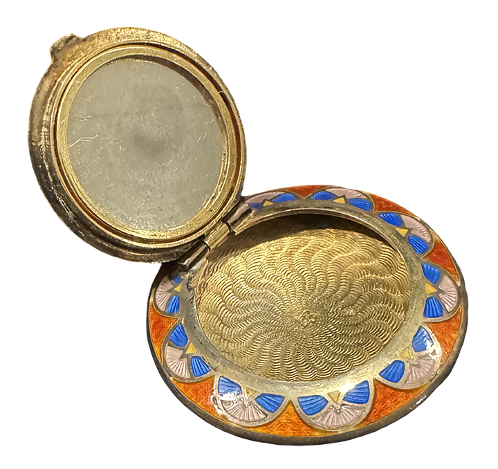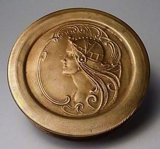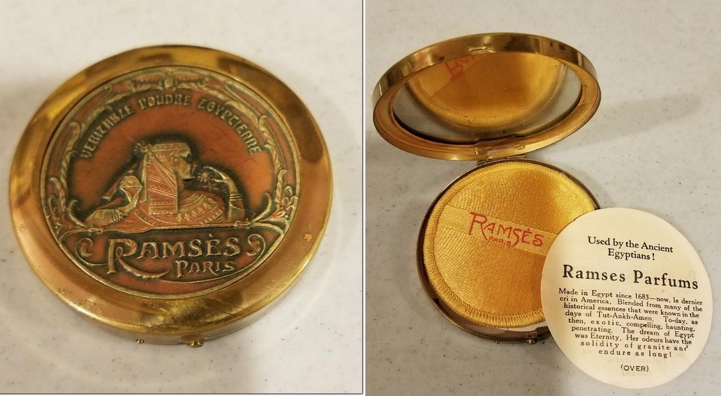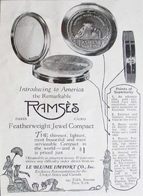 An embossed compact with Ramses image on the lid was featured in a Vogue magazine 1923 advertisement.