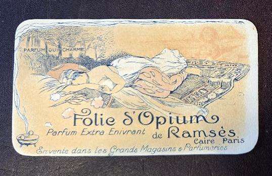 | | This ornate perfume card for Folie d'Opium by Ramses states that the fragrance is on sale in department stores and perfumeries. It was a scent for women, released in 1916. | | Cleopatra, Did You Know... | | |