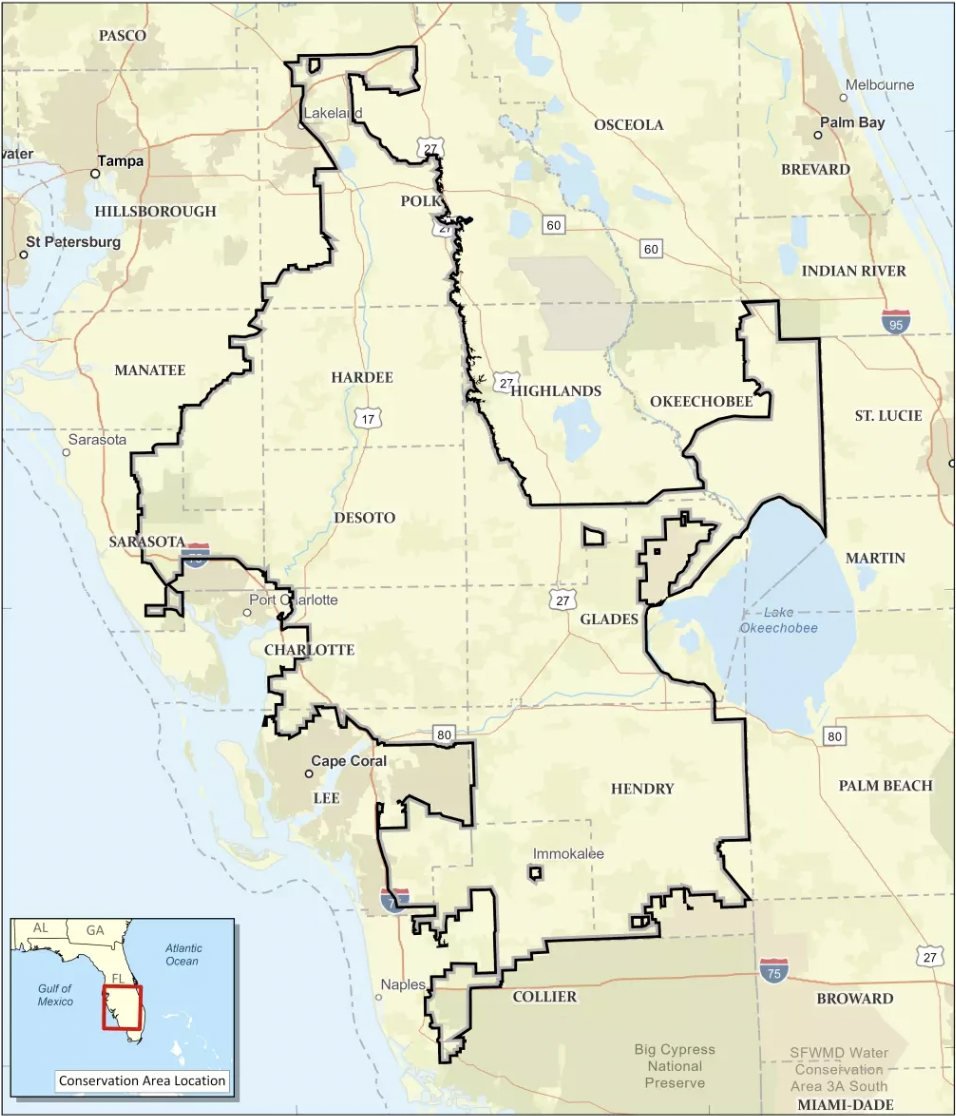 The ranch is part of the Blue Head Ranch Florida Forever Project and located within the Fisheating Creek watershed. The property protects water quality and provides connected habitat essential for the recovery of endangered species such as the Florida panther.