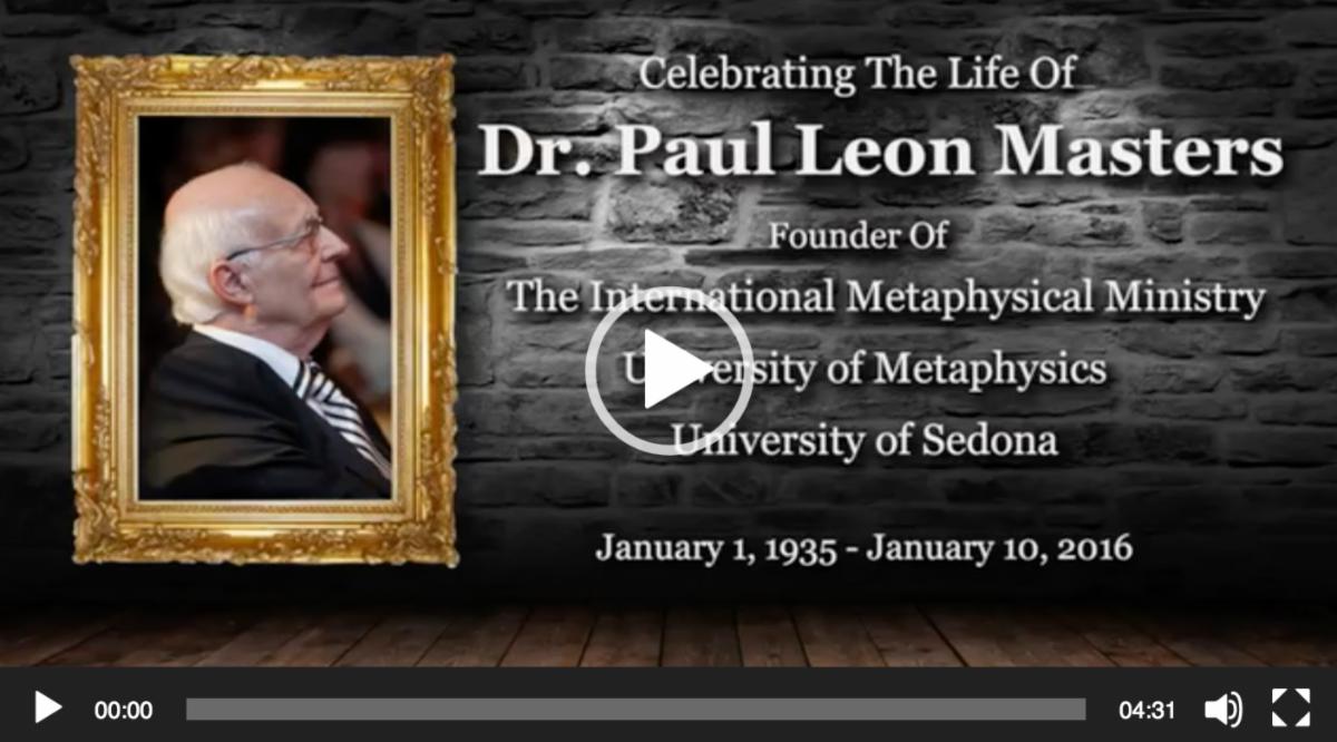 Dr. Paul Leon Masters' transition to the light. Every day, we feel his loving and guiding presence around us and will never forget his incredible smile, heartfelt laughter, and integrity. We were blessed and honored to have known him and had exposure to his profound words of wisdom and vision for the future and humanity. He continues to make a profound difference in many lives, and his teachings and legacy live on through the loving actions and examples of our devoted students, ministers, and graduates.