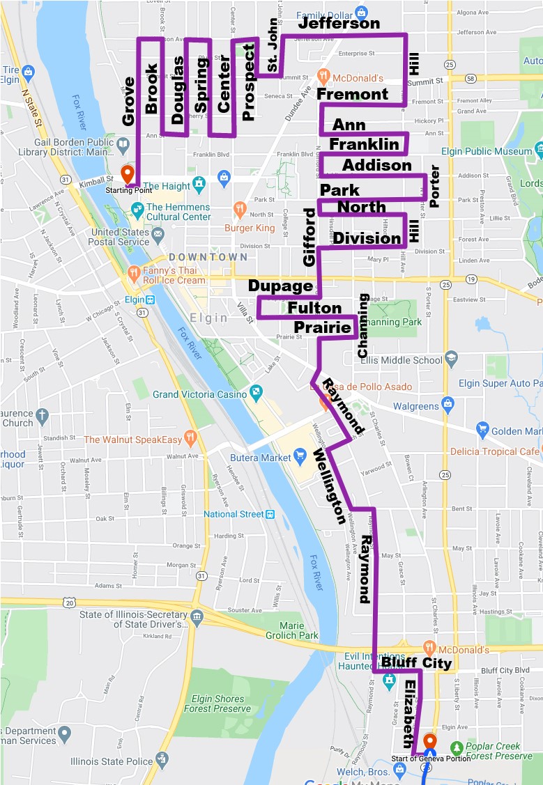 . Elgin's will commence at the old Library parking lot (200 Grove)