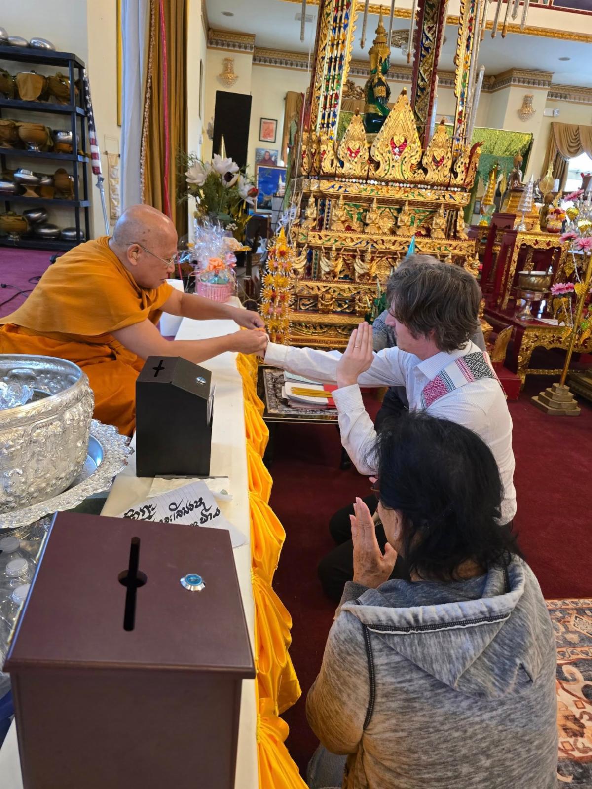 Another highpoint was an outing to Wat Lao Buddhavong in Catlett, Virginia. The Lao community there was preparing items for the upcoming Boun Kathin, a Buddhist festival in which community members offer new robes to monks who have completed the three-month rainy season retreat, called vassa. The Kathin festival brings together family and friends from the greater DC metro area, strengthening social and religious ties, and reinforcing Buddhist values of generosity, gratitude, and community service while also ensuring the well-being of the monks and the temple.