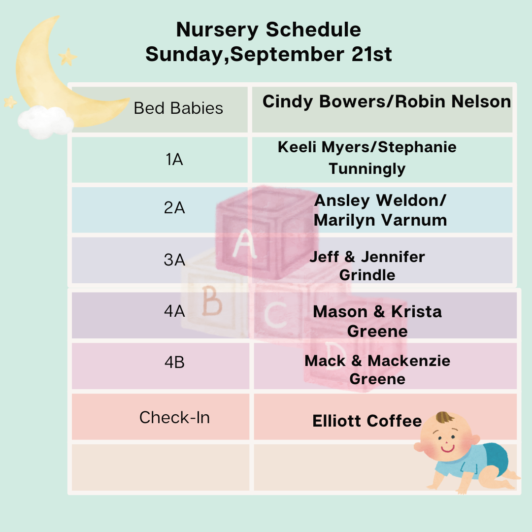 To sign up as a Nursery Volunteer, please use our convenient sign-up form! Click Here to Volunteer
