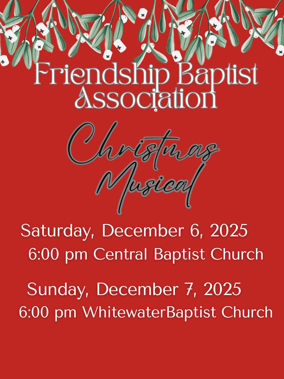 A second performance will be held on Sunday, December 7th at 6pm at Whitewater Baptist Church.