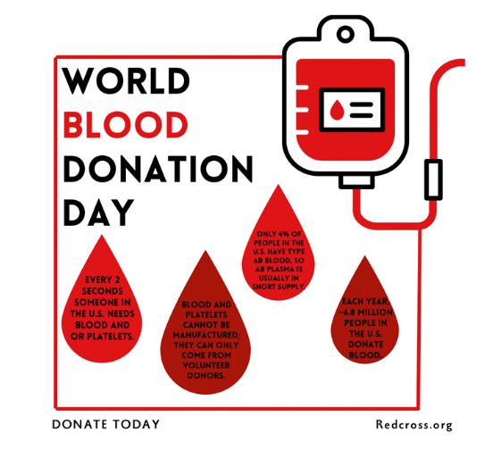 Every year, the United States and 194 countries around the world, celebrate World Blood Donor Day on June 14th. This day serves to raise awareness of the need for safe blood and blood products and to thank donors for their life-saving gifts of blood.