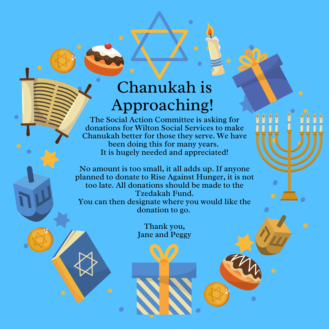All of us at Wilton Social Services wish the Temple B’nai Chaim congregation a joyous holiday season and a New Year filled with many blessings.