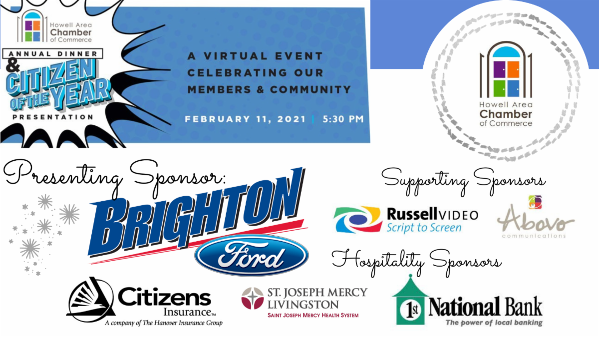 The Howell Area Chamber of Commerce will host a virtual 64th Annual Dinner & Citizen of the Year Presentation on Thursday, February 11th via Hopin. The event will recognize community leaders and spotlight key Howell Area Chamber of Commerce programs, activities, and accomplishments. The theme for the event is Community Heroes.