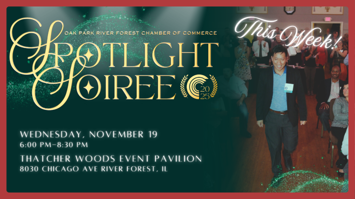 The Annual Spotlight Soirée is happening this Wednesday, November 19 at Thatcher Woods Event Pavilion! Don’t miss your chance to join us for an unforgettable evening celebrating the leaders, innovators, and doers who make Oak Park & River Forest shine. Award Categories This year, we’ll be recognizing excellence across six exciting categories: