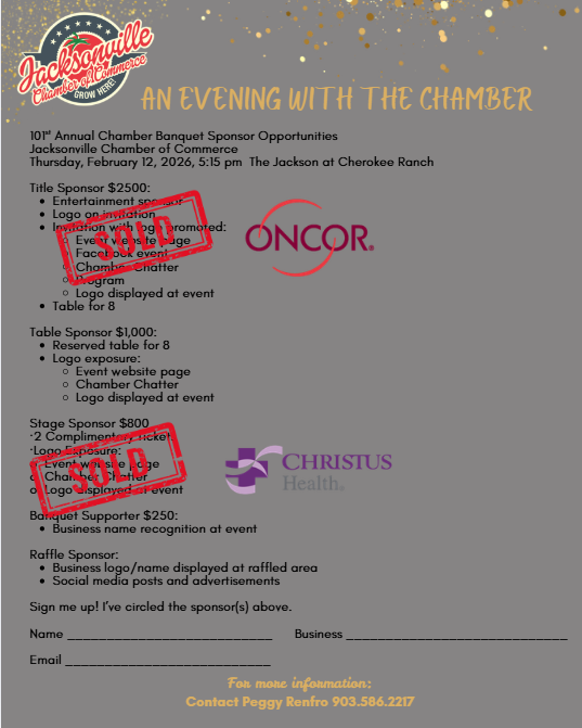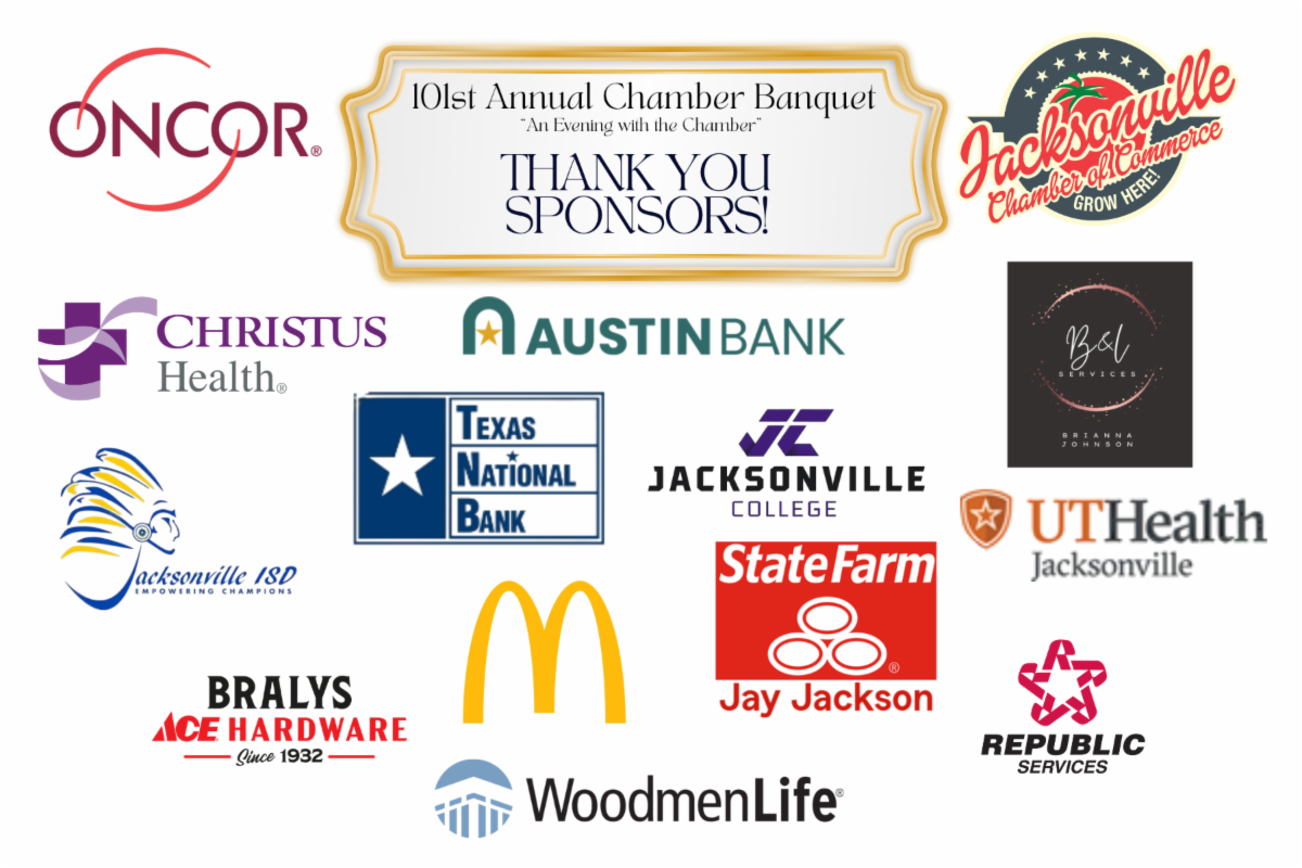 A huge thank you to our generous sponsors for supporting the 101st Annual Chamber Banquet. Because of you, we continue building connections, celebrating leadership, and growing Jacksonville together!