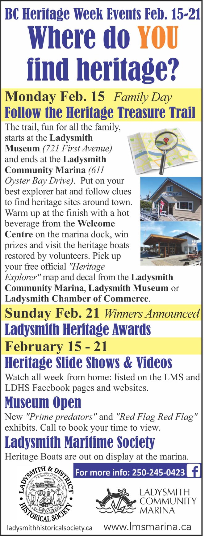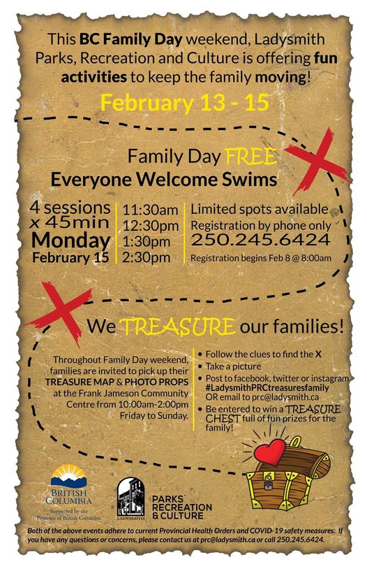 The real treasure is spending time with family, but those who find the “x” are invited to send their family picture to prc@ladysmith.ca to be entered to win a treasure chest full of fun prizes for the family.