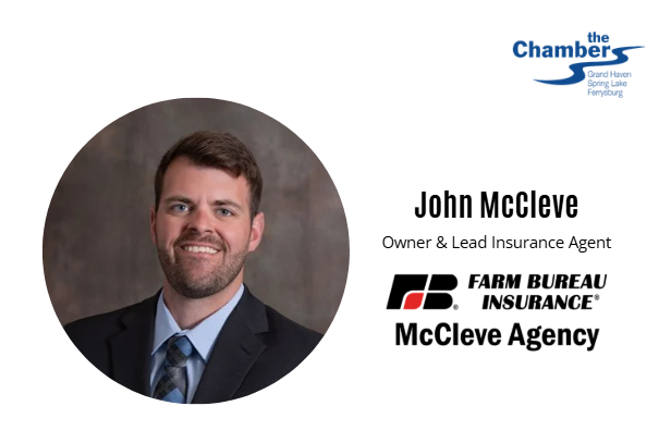John McCleve is the lead insurance agent and owner of McCleve Agency with Farm Bureau Insurance of Michigan. He has been a Chamber member for two years and an ambassador for one year.