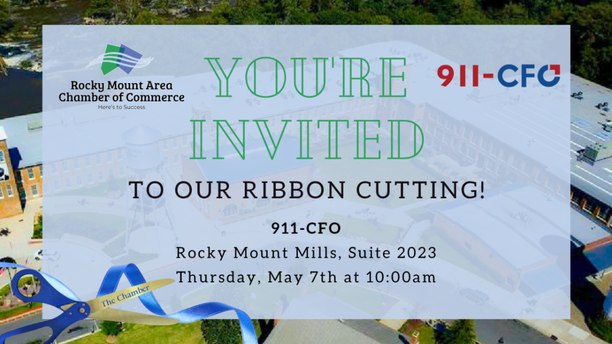 Join us for our ribbon cutting at 911-CFO on Thursday, May 7th at 10:00 AM at the Rocky Mount Mills!