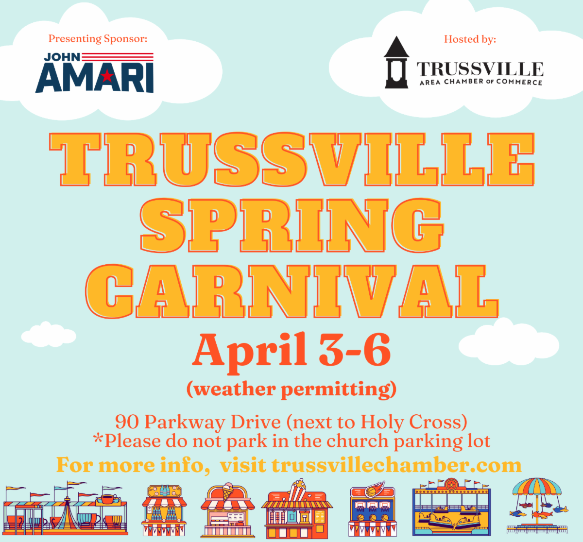 Who’s included: Trussville parks and recreation, Trussville Civic organizations and churches, Entertainment and activities in Trussville, Events of businesses that are members of the Trussville Area Chamber of Commerce and Trussville City Schools.