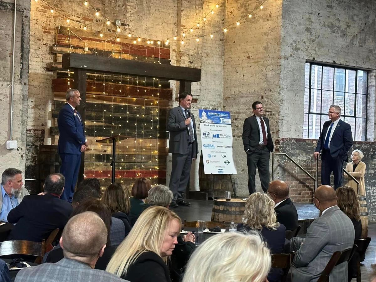 Senator Howell and other legislators address the crowd of west Kentucky representatives. | |