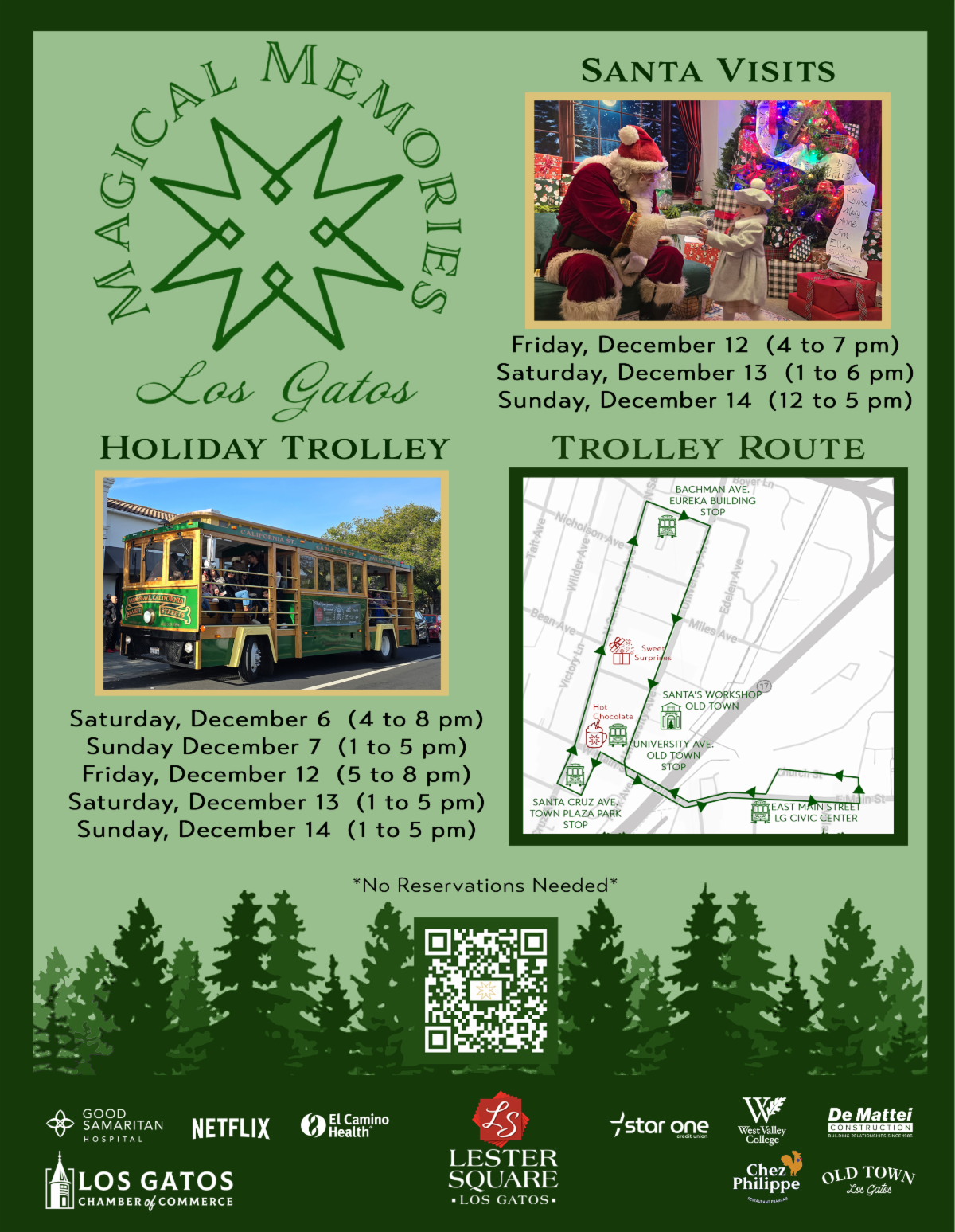 Enjoy Magical Memories the first two weekends of December with complimentary Trolley Rides, Visits with Santa, hot chocolate, and sweet surprises in the breezeway next to Automobuild—made possible by our generous sponsors, especially Presenting Sponsor Linda Lester of Lester Square.