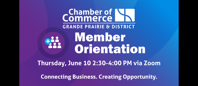 The Grande Prairie & District Chamber of Commerce invites you to a Chamber Member Orientation on Thursday, June 10 from 2:30 - 4:00 PM on Zoom. This event is designed for first-and-second-year members to find out more about the Chamber and try to make the most of their membership, but anyone who has been a member for more than two years is also welcome to participate in this information session.