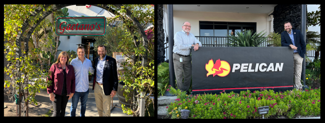 Senator Ben Allen, 26th District, recently spent time at two Torrance businesses, Gaetano's Restaurant and Pelican Products, Inc. The Senator engaged with Gaetano's owner Vince Giuliano on a variety of topics including the history of Gaetano's, challenges encountered during the pandemic and ways in which he and others might be able to provide resources in the future.