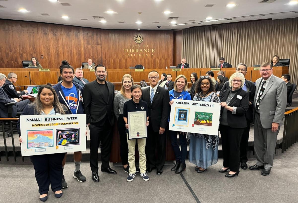 Torrance Mayor George Chen presents the Small Business Saturday Proclamation to Creative Joy, Dig It Torrance, Pinkberry, and Zoom Room Torrance in a Nov. 15 City Council meeting. | |
