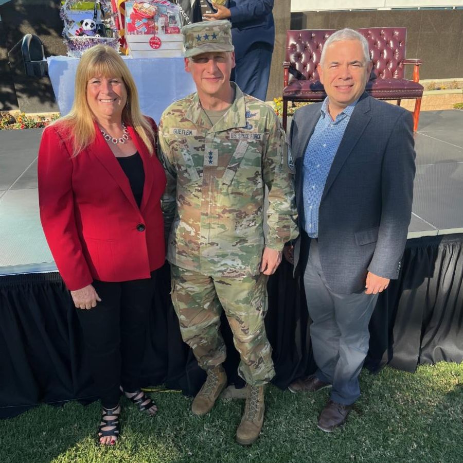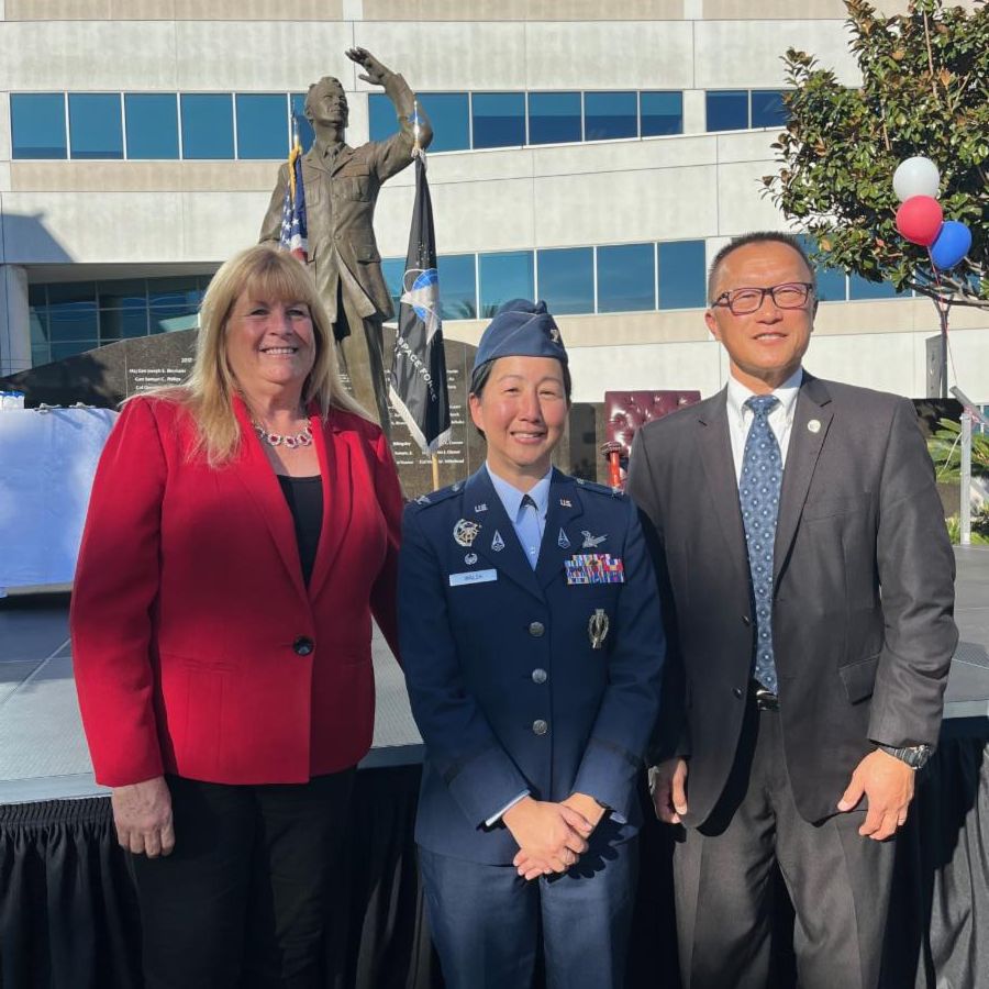 Colonel Mia L. Walsh welcomes Donna Duperron and Mayor George Chen, City of Torrance. | |