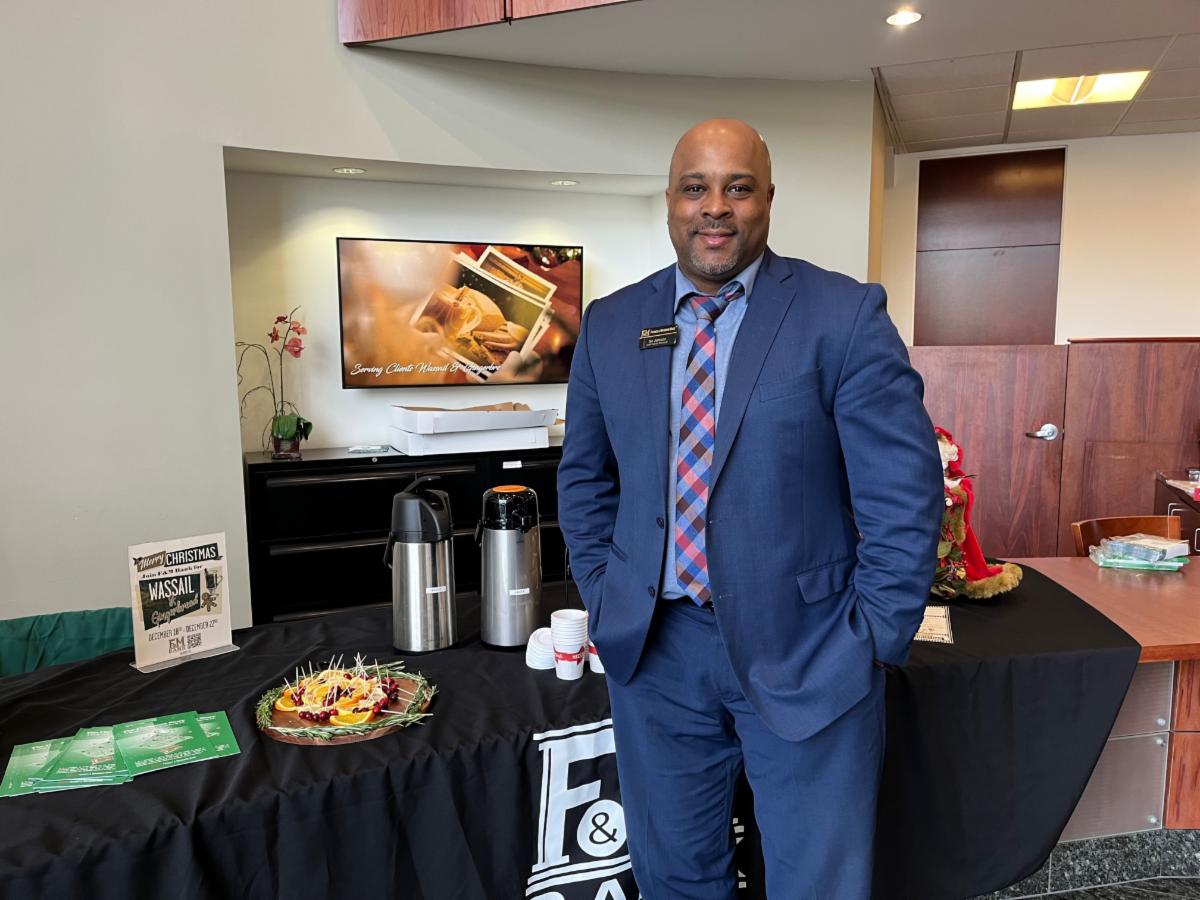 Ibn Johnson, Client Services Manager, Farmers and Merchants Bank welcomes Donna Duperron. This week, the Torrance Branch is hosting Wassail and Gingerbread for members. | |