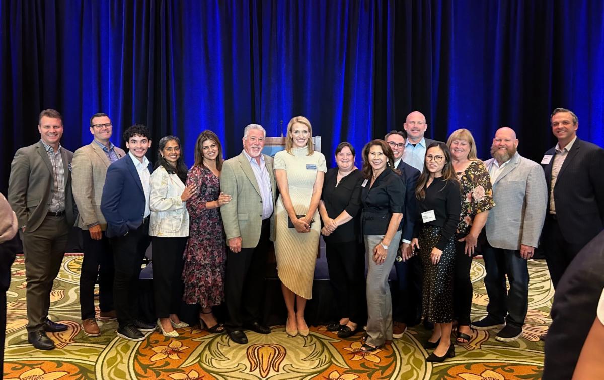 Jennifer Barrera (center), President and CEO, California Chamber of Commerce, welcomes special guests to the recent CalChamber Board of Directors meeting held in Anaheim. | |