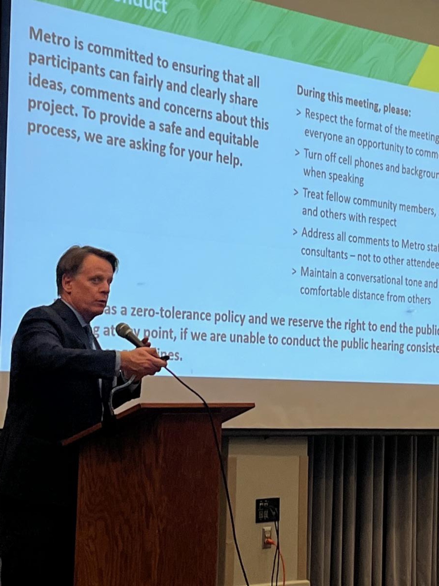 Donna Duperron, President/CEO, provided testimony at a METRO hearing this past Monday evening regarding the C Line (Green) extension to Torrance. Duperron delivered the message that the Torrance Area Chamber of Commerce is in support of the Metro Row Alignment (Elevated/Street-Level) option.