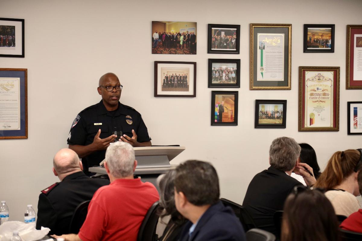 Sargent Ron Salary, Torrance Police Department, addresses chamber members | |