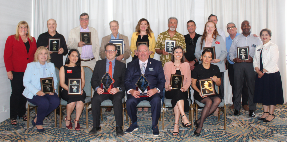 Honorees include: Stan Gray, J. Walker Owens Volunteerism Award; Larry Halvorsen, George M. Whittlesey Memorial Award; Virco Manufacturing Corporation, Large Business of the Year; Brenda Hidalgo - State Farm Insurance Agency, Small Business of the Year; John Schoen, Chamber Impact Award; Mike Cirona and Taylor Roll, Emerging Leaders; DoubleTree Hilton Torrance - South Bay, Excellence in Business; ICAN California Abilities Network, Nonprofit of the Year; Sunrider International and Volunteer Center South Bay, Harbor, Long Beach; Sakura Finetek USA (not pictured), Legacy Award; Glen Golightly, Ambassador of the Year; Wine Shoppe, Hidden Gem; Ana Straser, Young Business Executive; Roadium Open Air Market, Exceptional Community Business.