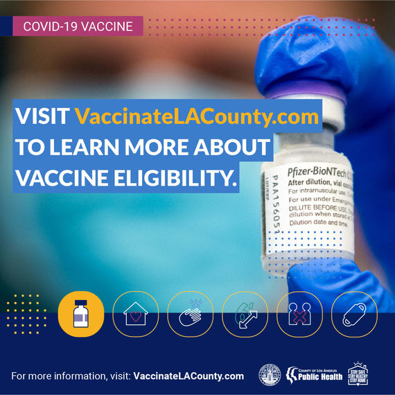 Visit VaccinateLACounty.com for the latest information on COVID-19 vaccines and to find out if you are currently eligible to receive one.