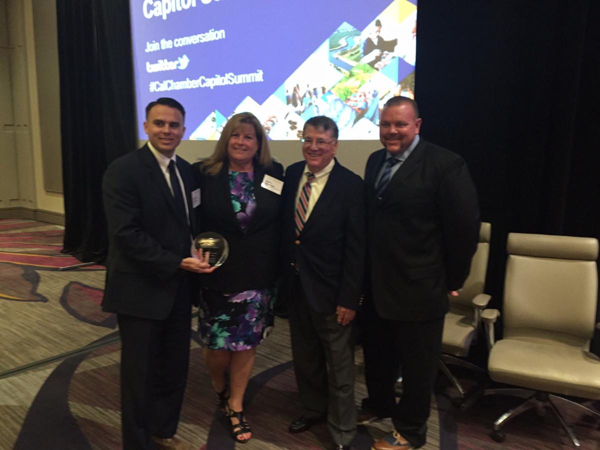Rob Van Lingen, far right, was presented with the Small Business Advocate of the Year in June 2015. Additionally, the Torrance Area Chamber of Commerce received the President's Circle award. Pictured with Van Lingen are (l to r): Brandon Matson, Donna Duperron and Dave Kilby, Executive Vice President, California Chamber of Commerce. The ceremony was held in Sacramento.