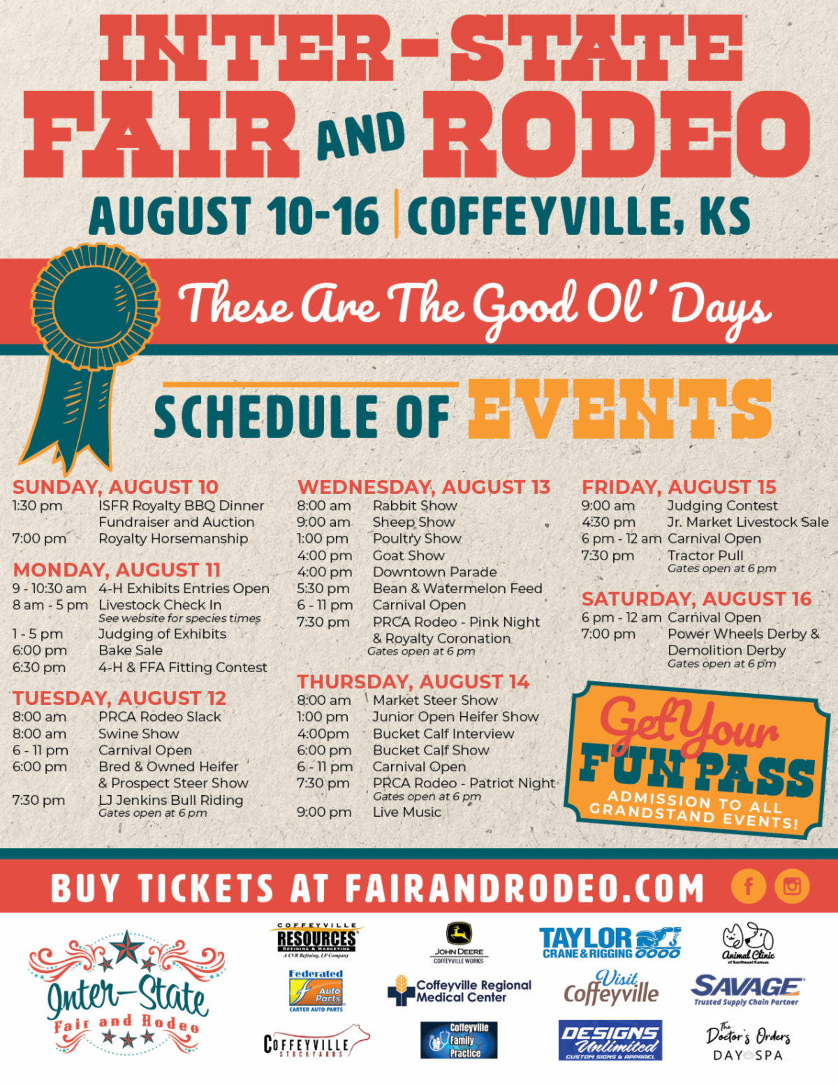 buck-out is next Thursday, Aug. 14th at 6pm. Sponsors still needed for a few riders. This is a fun event, and monies raised go back to our community children's programs. Our CCC Rodeo Team will be judging again this year and our own Griffin Walker is back to give us a play by play. Make plans to come see this fun event!
