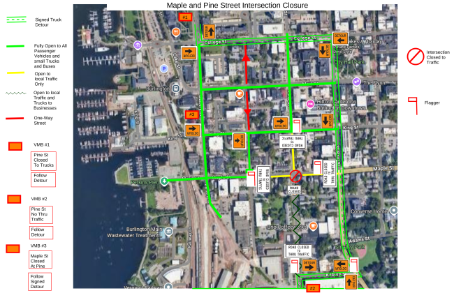 THE INTERSECTION OF MAPLE STREET AT PINE STREET WILL BE FULLY CLOSED 24 HOURS A DAY THIS WEEK