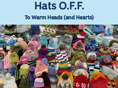 Fundraiser: Hats can be sponsored at $10/hat. The hats are given to the children and the $10 donations support Grace Church and its mission. Hats can be supported by using the donation button on the Grace Church website, www.gracechurchsalem.org. If you donate online, be sure to send an email to fundraising@gracechurchsalem.org so that the donation will be attributed to the Hats O.F.F. campaign.