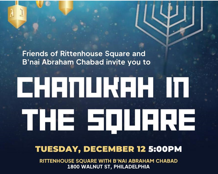 Join the Friends of Rittenhouse Square and B’nai Abraham Chabad for our annual Chanukah Celebration!