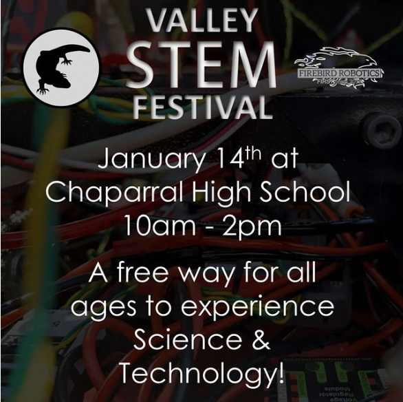 The Valley STEM Festival, organized by Firebird Robotics from Chaparral High School, will be held outdoors on January 14, 2023, from 10 a.m.-2 p.m. with no charge for participants or attendees.