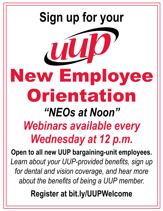I look forward to hearing from all of our newest union members as you begin and grow in your career here at Stony Brook HSC. Your input and concerns are of utmost importance to me and the rest of the UUP Chapter leadership.
