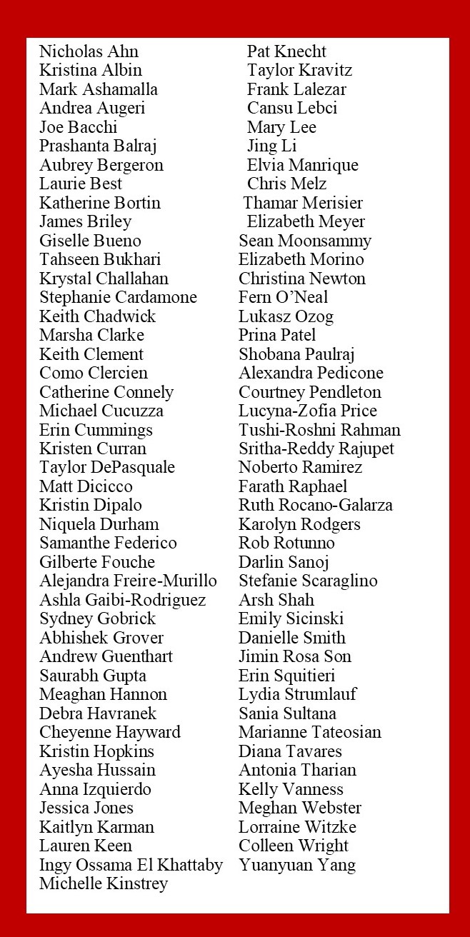 Please give a warm welcome to the following new members of the Stony Brook HSC chapter!