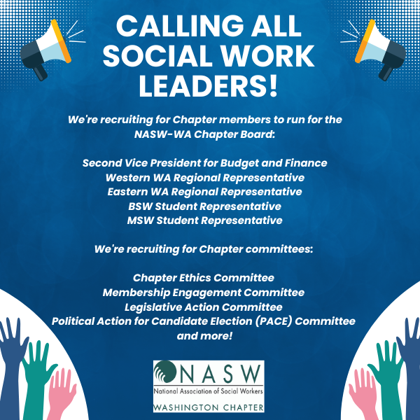 Our members help the Chapter's work in so many ways! The NASW-WA Chapter seeks members to serve on our Chapter