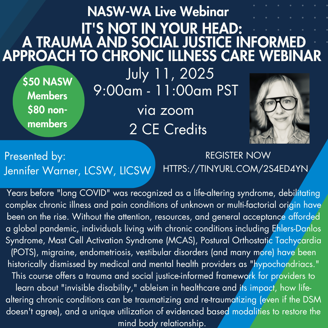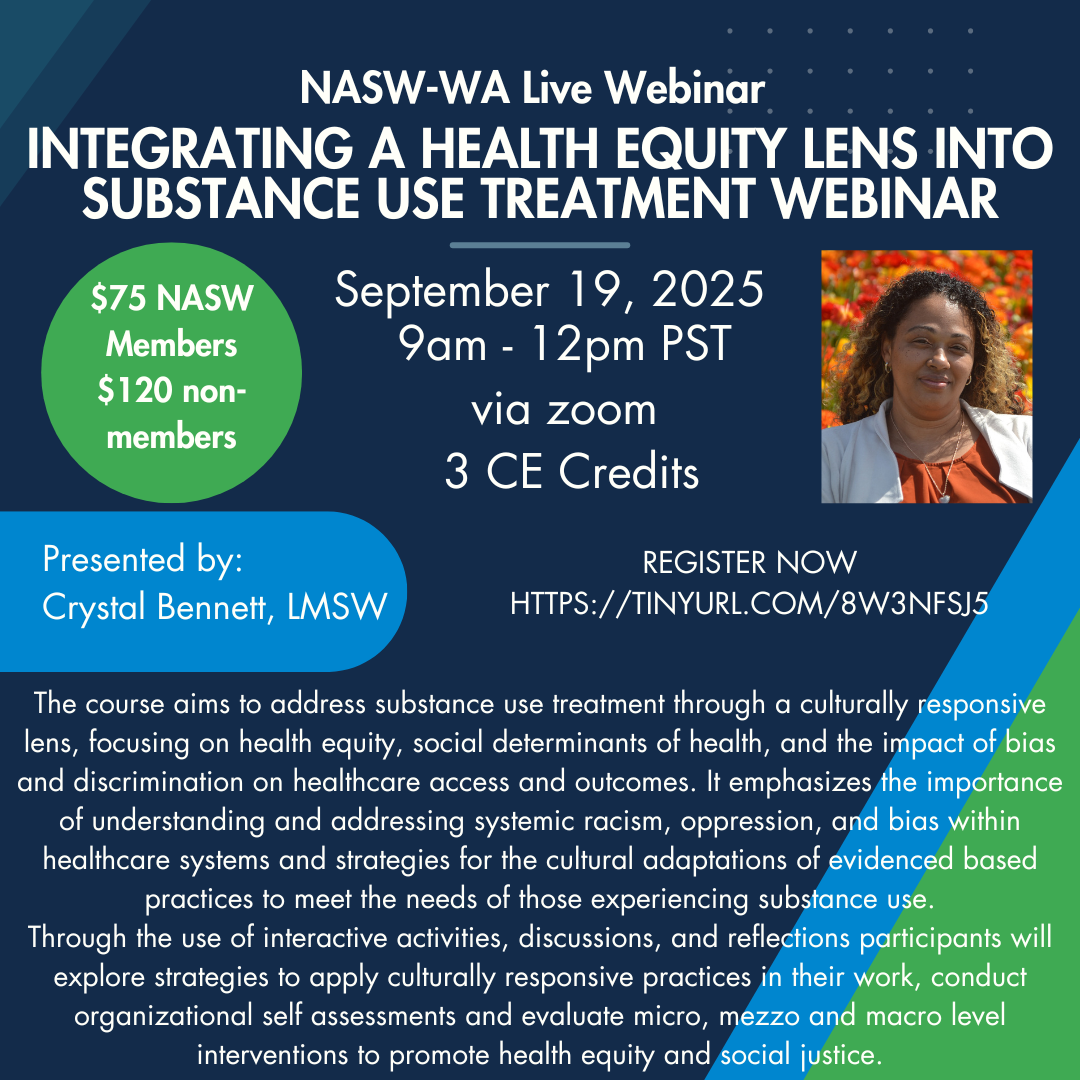 The benefit and power of belonging to NASW-WA cannot be overstated. This professional association offers more than just resources—it offers a community and those connections are critical. The strength of our association lies in our relationships—with one another, with our communities, and with those we serve. In the face of burnout, isolation, and increasing demands, let us lean on and uplift each other. Together, we are stronger, and together, we can create meaningful change.
