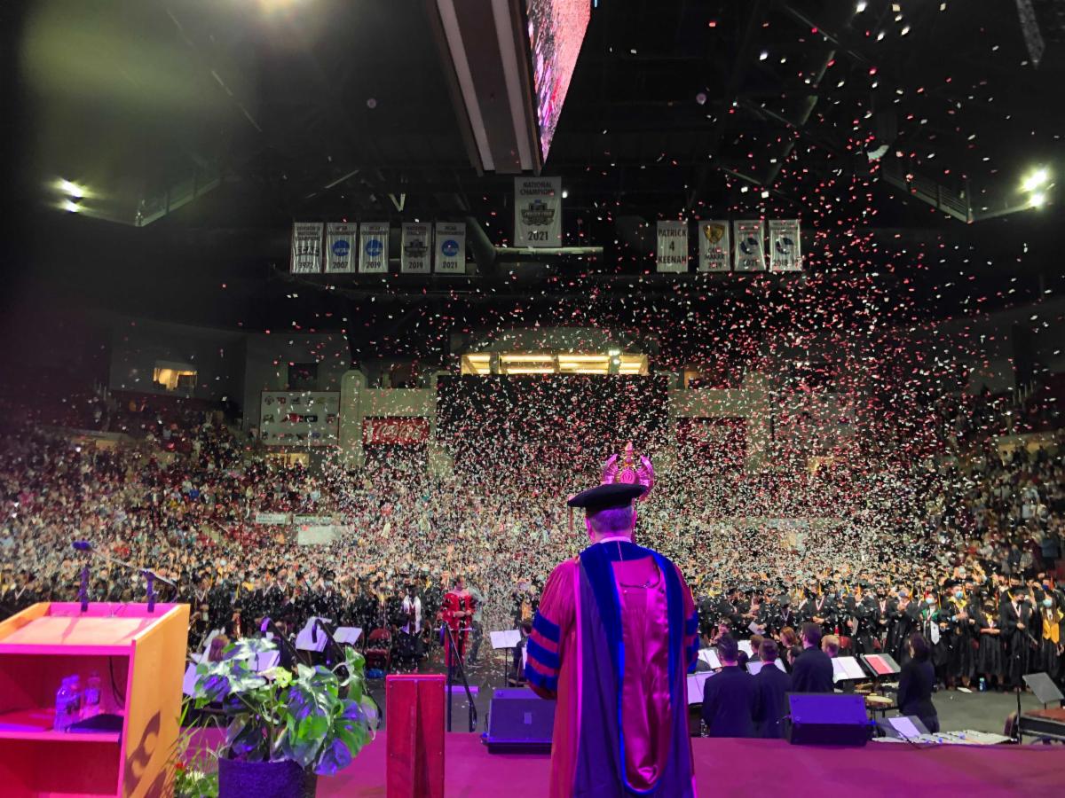 It was an honor to join UMass Amherst’s celebration of the Class of 2020. Congratulations to the 21st Century Leaders (former Senate team fellow Tim Scalona among them), Jack Welch Scholars, faculty, staff, and especially the incredible students. Thousands returned to appropriately mark this milestone achievement and lift all our spirits with their buoyancy, joy, and persistence. Wonderful addresses by Dr. Wilmore Webley, Justice David Lowy, Grace Jung, and of course Chancellor Subbaswamy, reminding us all about the power and promise of public higher education. Go UMass!