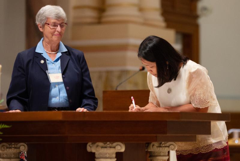 Sister of Charity of Cincinnati Romina Sapinoso pronounced First Vows during a ceremony on Sept. 22, 2018, in the Immaculate Conception Chapel at the Mount St. Joseph Motherhouse. To learn more about S. Romina, visit